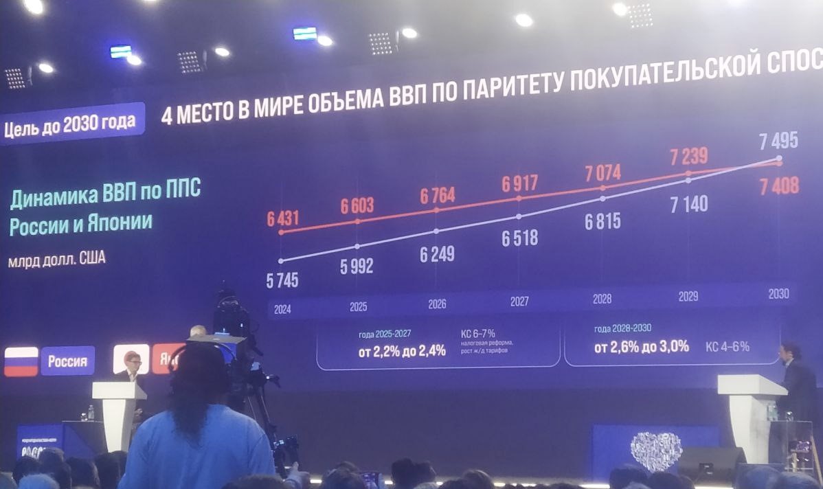 В итоге всего комплекса работ Россия должна стать третьей экономикой в мире, показав рост на 16-17 процентов к 2030 году.