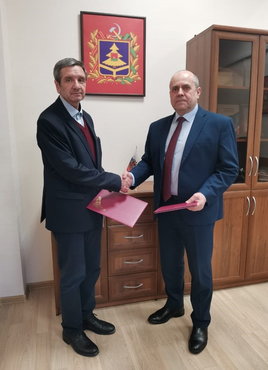 Уполномоченный по защите прав предпринимателей в Брянской области Сергей Рондиков и генеральный директор Брянской областной Ассоциации промышленников и предпринимателей – Региональное объединение работодателей Олег Пархоменко провели рабочую встречу, в ходе которой было подписано соглашение о взаимодействии.