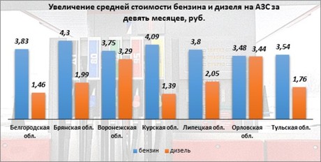 Сколько стоит бензин и дизельное топливо в регионах присутствия ИА vRossii.ru, и как они увеличились за последний месяц? Разбираемся.
