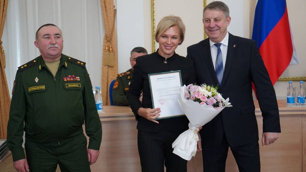 В правительстве Брянской области губернатор Александр Богомаз и заместитель начальника Национального центра управления обороной России генерал-лейтенант Юрий Викторович Корсачев вручили награды Министерства обороны.