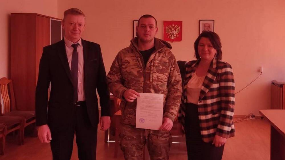 В Севске сироте − участнику специальной военной операции, который прибыл в краткосрочный отпуск, вручили сертификат на приобретение жилья.