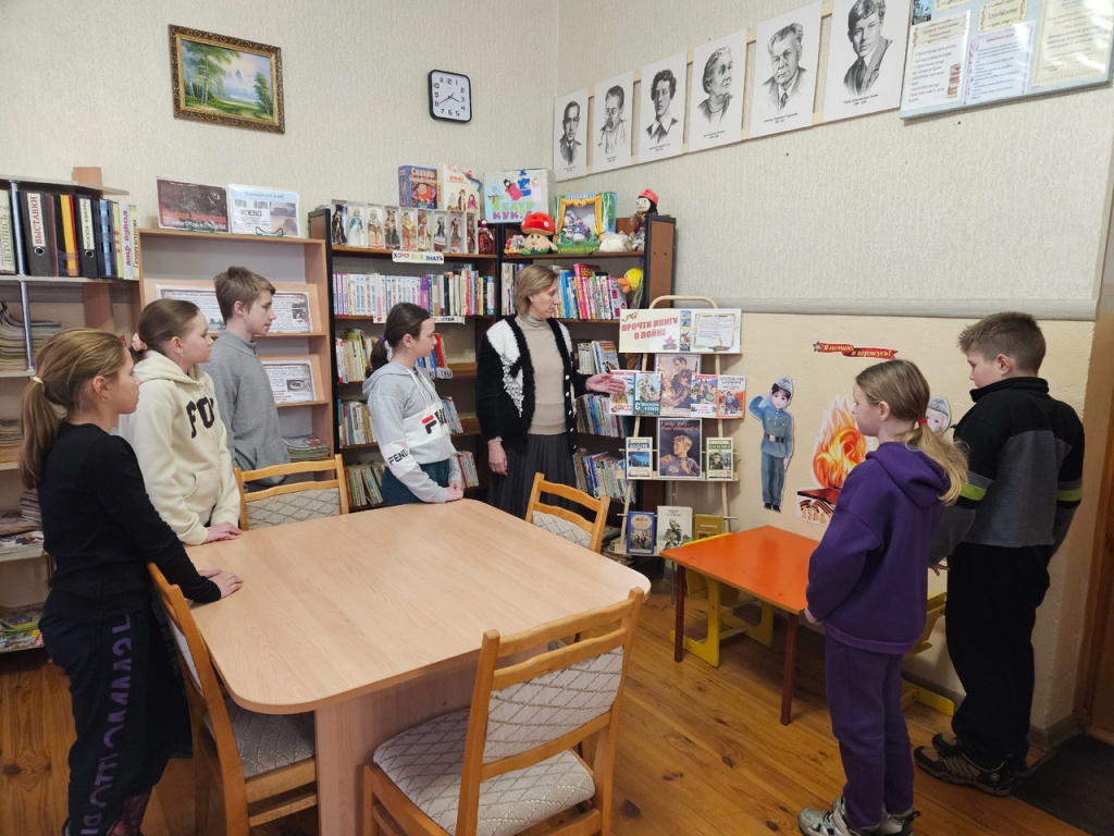 Вниманию ребят представлены: выставка «Блокада Ленинграда», рассказывающая о беспримерном подвиге, совершенном защитниками Ленинграда в годы Великой Отечественной войны и обзор книжной выставки «Прочти книгу о войне», на которой представлены книги о грозных, трагических событиях военной поры, художественные произведения о детях-героях, стихотворения о Великой Отечественной войне.