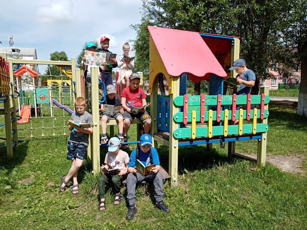 Для привлечения детей к чтению выходила с книгами на детскую площадку. Ребята на свежем воздухе смотрели много интересных книг.