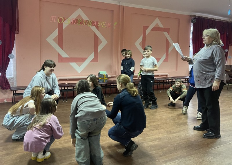 Дед Мороз прислал письмо, в котором просит ребят помочь ему найти потерявшиеся поздравительные открытки. Дети с азартом взялись за дело. Они разделились на две команды и отправились на станции согласно маршрутным листам. Всего было 7 станций: «Новогодние ребусы», «Сказочные пазлы», «Загадочная», «Меткий стрелок», «Зимний ветер», «Колпачок», «Льдинка, снежинка, сугроб».