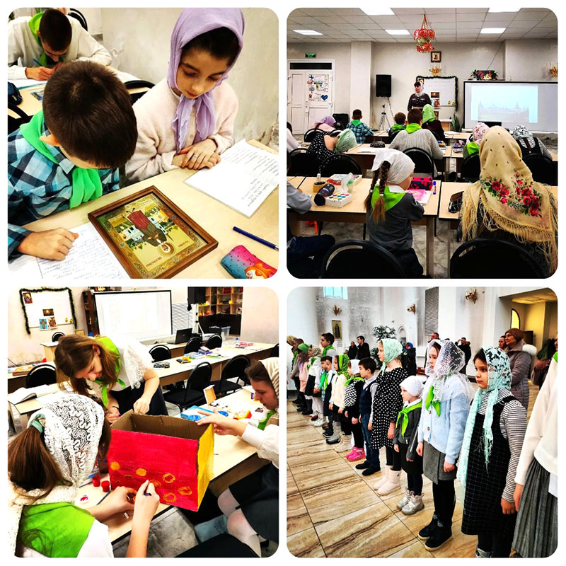 Во второй части урока ребята начали подготовку к благотворительной акции “Добро без границ” которая будет проходить в притворе кафедрального Богоявленского собора с 10 февраля по 3 марта 2024 года.