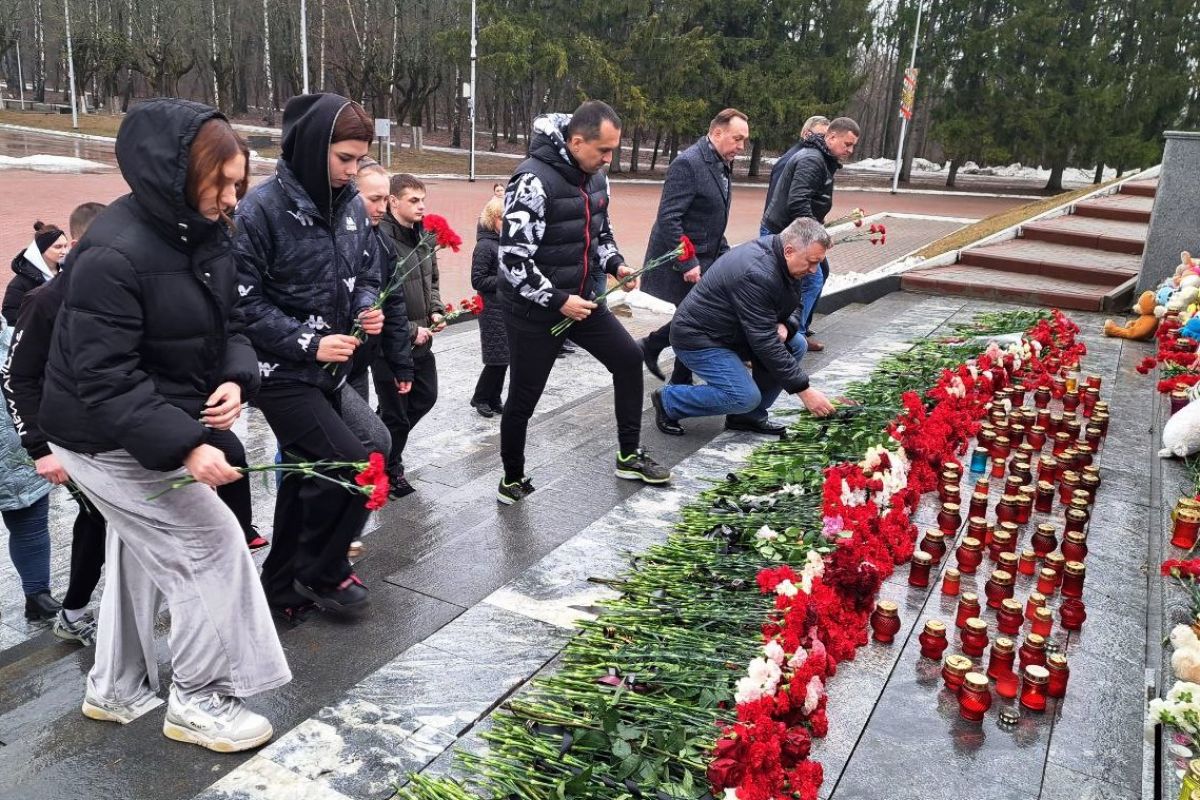 На Кургане Бессмертия брянцы с утра возлагают цветы к стихийному мемориалу жертвам теракта в Подмосковье
