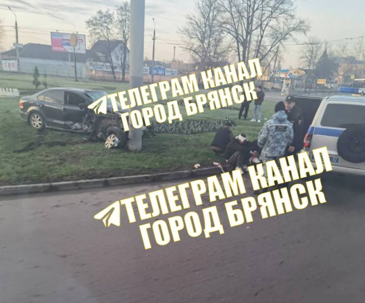 В Брянске на кольце Телецентра авто залетело на клумбу и врезалось в столб