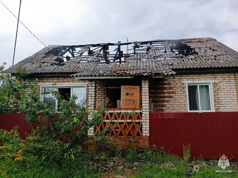 К тушению привлекались две пожарные автоцистерны. Пожар ликвидирован. Огнём повреждена кровля и стена дома на площади 100 метров квадратных. Причина пожара устанавливается. При этом в официальном телеграм-канале ведомства сообщается, что причиной пожара стала молния.