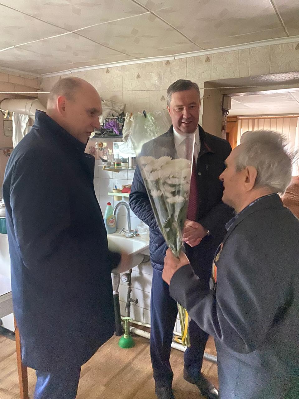 Глава города Олег Шкуратов, глава городской администрации Сергей Евтеев и заместитель председателя Брянской областной Думы Виталий Беляй поздравили с днем Победы ветерана Великой Отечественной войны Константина Павловича