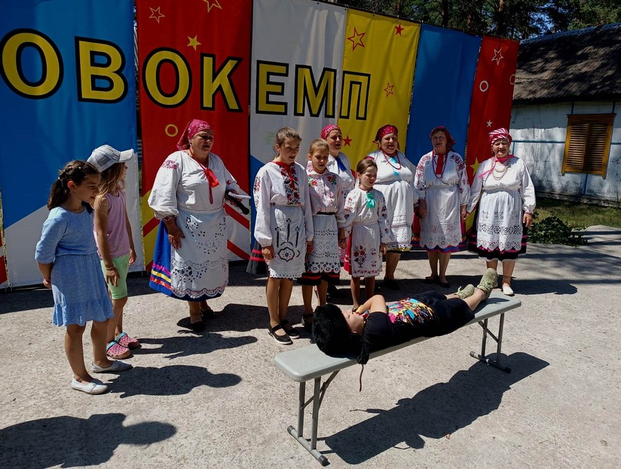 К ребятам на творческую смену в лагерь "Новокемп" приехал Народный фольклорно-этнографический коллектив "Карагод" (седо Верещаки Новозыбковского округа руководитель Клименок Г.А.). Совместные хороводы, игры и песни села Верещаки, которые интересны своей традицией, покорили сердца детей. Не случайно, что проект "В гости к терёшечке" является истоком традиций села Верещаки.