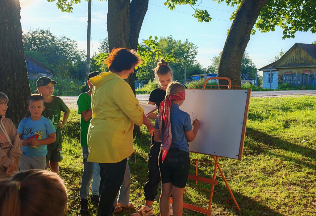 В заключение мероприятия был проведён творческий конкурс. Участники с закрытыми глазами рисовали кошек.