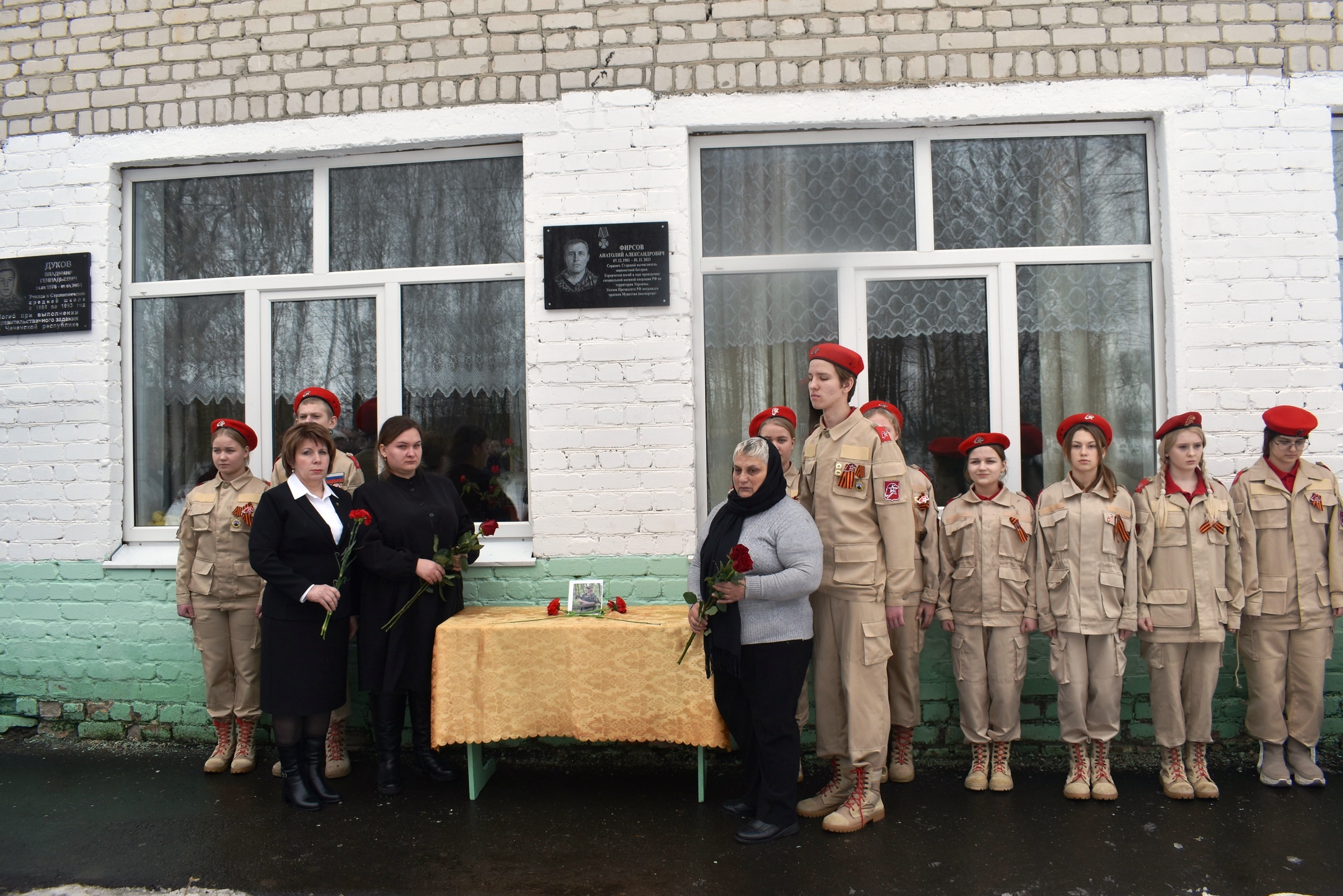 На здании Страшевичской школы установили еще одну мемориальную доску — памяти ее выпускника Анатолия Фирсова, погибшего в ходе специальной военной операции на Украине На торжественный митинг, посвящённый памятному событию,