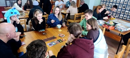 4 января в читальном зале Центральной библиотеки было шумно. Свой без пяти минут двухлетний юбилей отмечал клуб любителей настольных игр «Игротека в библиотеке». И отмечал от его, конечно же, играя! Билет на поезд, Кодовые имена, Декодер, Диксит, Узоры, Пэчворк, Uno, Тако-Кот-Коза-Сыр-Пицца, Азул – в этот день «в меню» был целый калейдоскоп «праздничных блюд». Игроки размышляли, строили стратегии, предугадывали ходы соперников, играли заодно против игры, смеялись и от души веселились. 4 часа пролетели мгновенно. Этот день, как, впрочем, и все предыдущие, запомнился всем