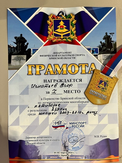 2-3 марта в манеже «Десна» города Брянска состоялось первенство области по легкоатлетическому многоборью! Среди юношей 2009-2010 гг.р воспитанник МБУДО СШ им. Героя РФ В.И Шкурного Егор Игнатьев одержал победу! Поздравляем!