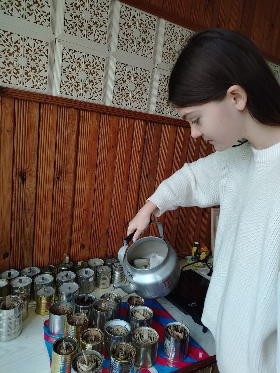 Изготовление окопных свечей - это важнейшая частичка помощи солдатам от наших ребят. Окопные свечи - это незаменимый источник света и тепла для солдат, находящихся в сложных условиях. Солдаты, находящиеся в зоне СВО, испытывают острую нехватку подобных свечей, и их постоянное наличие становится важным фактором для поддержания комфортных условий жизни и работы. Пусть это лишь малая доля, что мы можем сделать для нашей общей победы, но мы твердо знаем, что победа будет за нами.