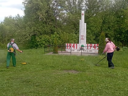 В преддверии Дня Победы работники культуры поселка Оболëшево провели уборку Обелиска и территории, прилегающей к нему в селе Кневичи.