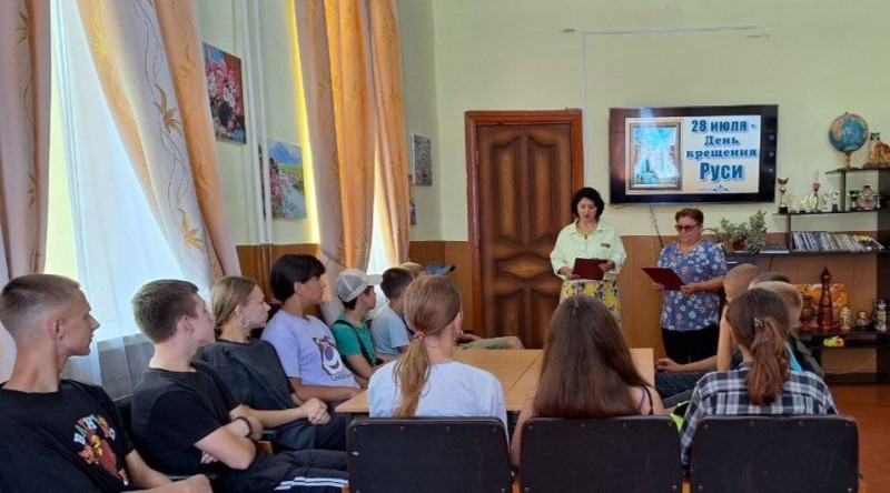 В Великотопальском Доме культуры культорганизатор и библиотекарь провели час духовности «Сказание о крещении Руси», который сопровождался показом презентации «Крещение Руси». Для закрепления материала была проведена викторина «Русь моя православная».