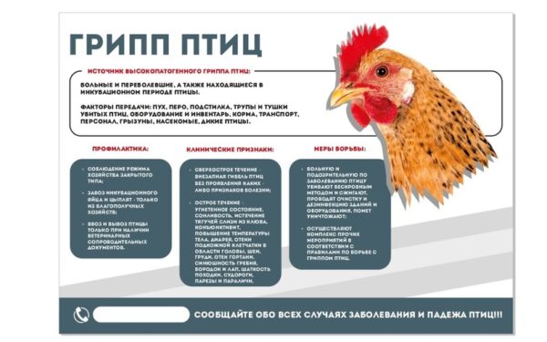 При возникновении признаков заболевания, сходных с изложенными выше, необычном поведении или падеже птицы, владелец обязан немедленно сообщить об этом ветеринарному специалисту, обслуживающему закреплённую за ним территорию, и не ожидая специального указания, закрыть доступ посторонним лицам, прекратить передачу или продажу птицы, яиц и других продуктов птицеводства, вывоз из хозяйства фуража, инвентаря, оборудования, помёта.