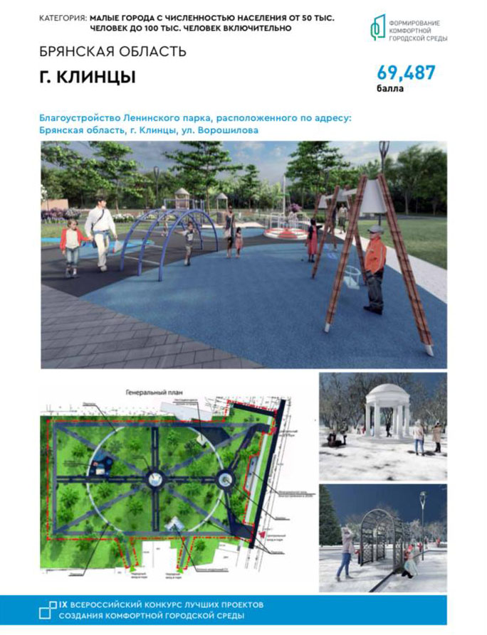 - В качестве награды Клинцы получат 103,1 миллиона рублей из федерального бюджета на создание зоны Ленинского парка по улице Ворошилова.